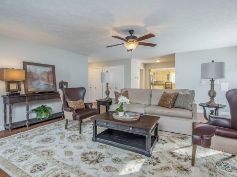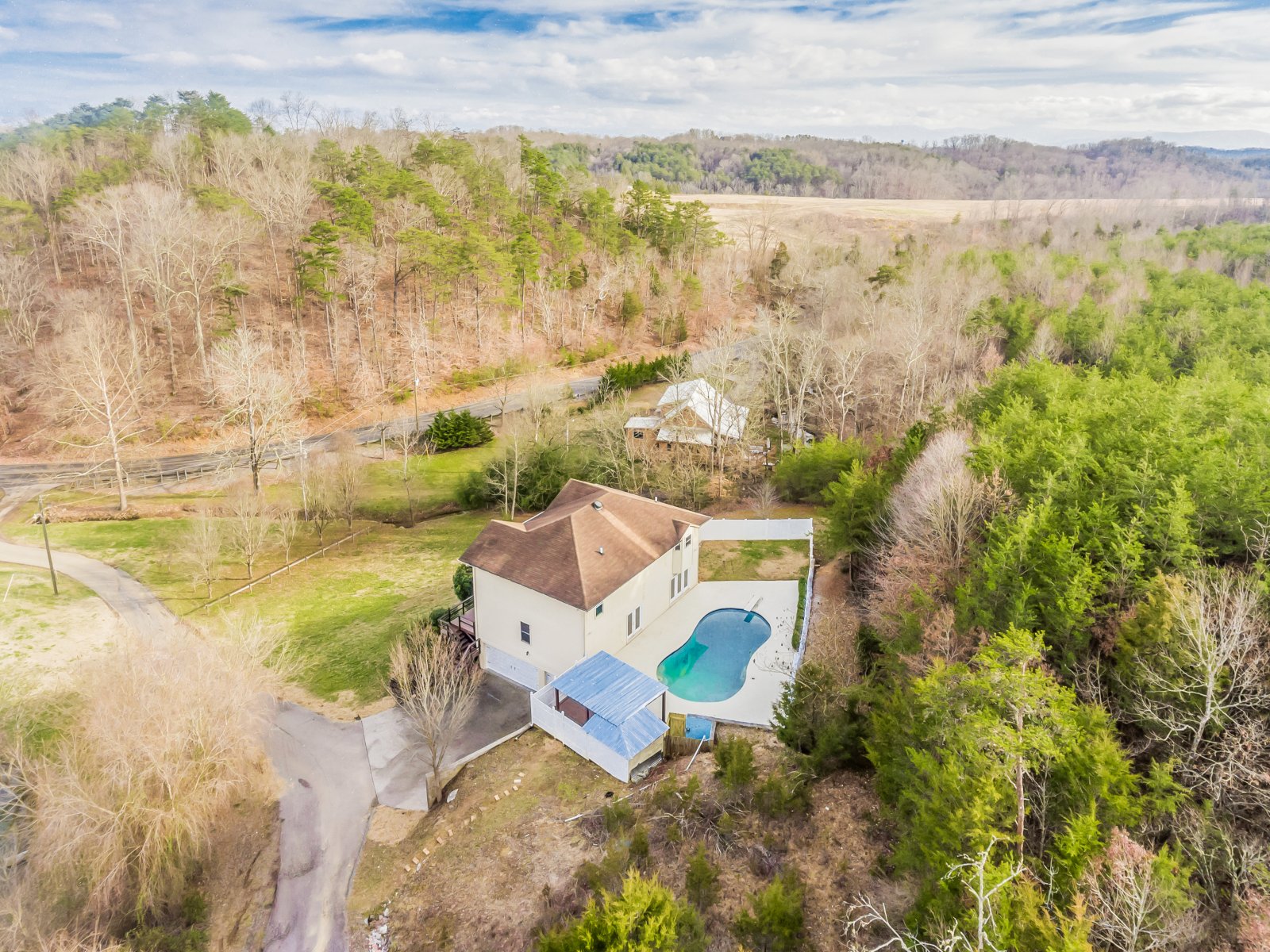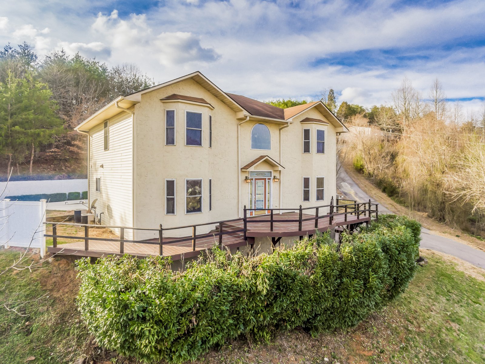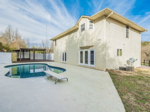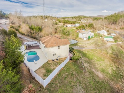 This breathtaking home offers 3 bedrooms, 3 baths, and ample space for entertaining friends and family. This home features: an over-sized master suite, complete with a huge walk-in closet and a shoe closet, spacious master bathroom with relaxing whirlpool tub, laundry room on the same level as the bedrooms, tons of extra storage space, expansive cabinet/pantry space, brand new wine cooler, formal dining room, office/study on main level, large living room, and a finished basement that is perfect for a home office, relaxation, exercise & entertaining. Sensational private outdoor living area with a beautiful in-ground pool, covered veranda/tiki bar, and a stunning wrap around porch over looking the Great Smokey Mountains! Conveniently located, only 5 minutes from I-40. This home will not last long!!